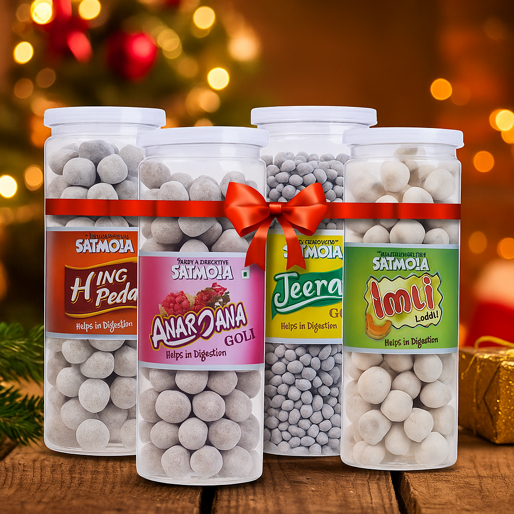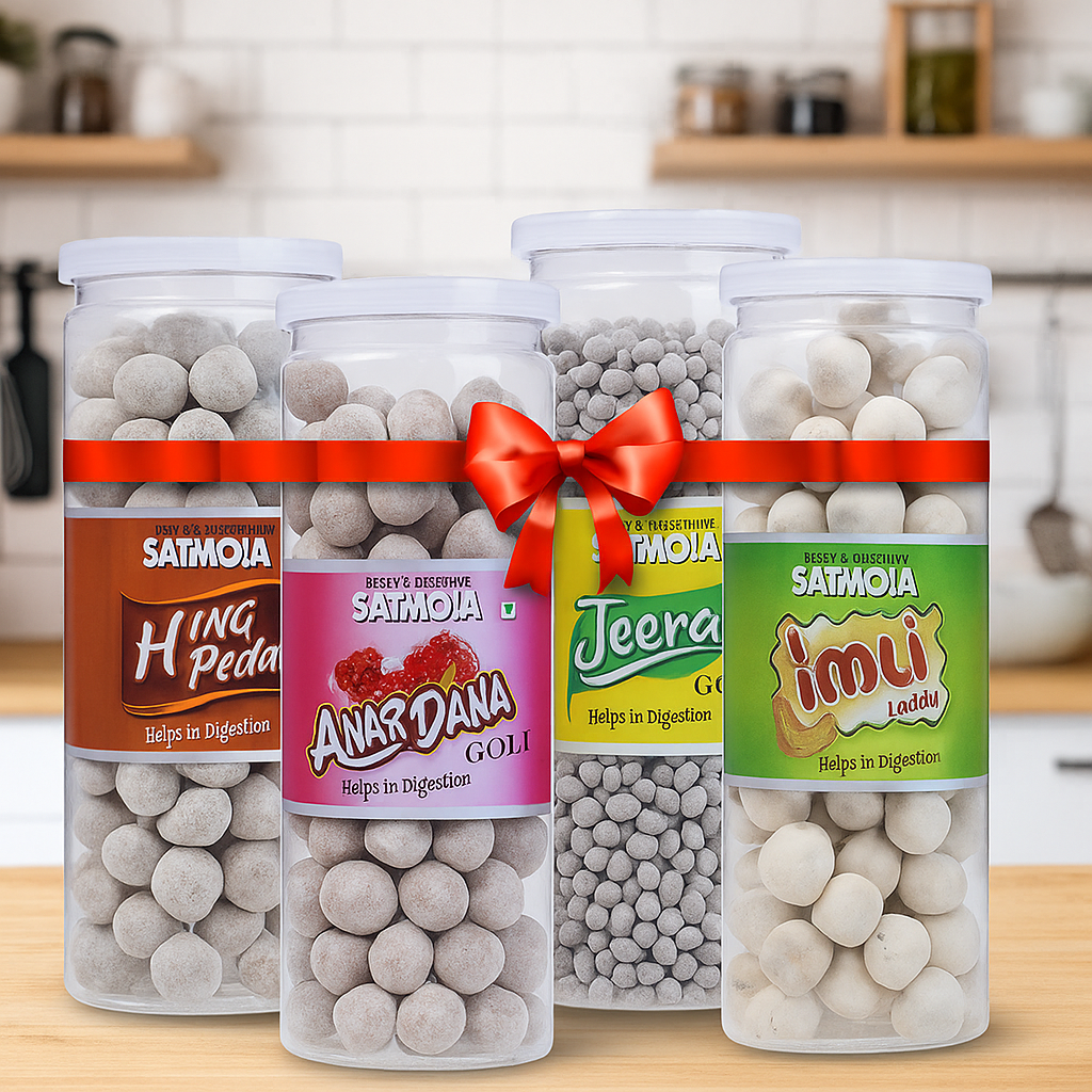 Experience the perfect mix of taste and digestion with the Satmola Tasty & Digestive Combo Pack – a specially curated selection of our most loved candies: Anardana, Imli Laddu, Hing Peda, and Jeera Goli.